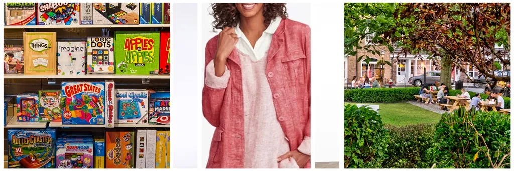 The gorgeous sunny weather allows you to stroll to settle in on the spacious Green with blankets and toys you can pick up from jaZams during your walk. Enjoy the live music playing from one of our patio spaces as you make your way to the shops for some retail therapy. Whether you’re looking to shop summer sales or snag new fall arrivals, you will certainly find stunning pieces at Nic+Zoe, Lace Silhouettes, J.McLaughlin, and Highbar Boutique! Feel safe and confident during the entire process.