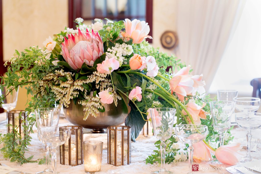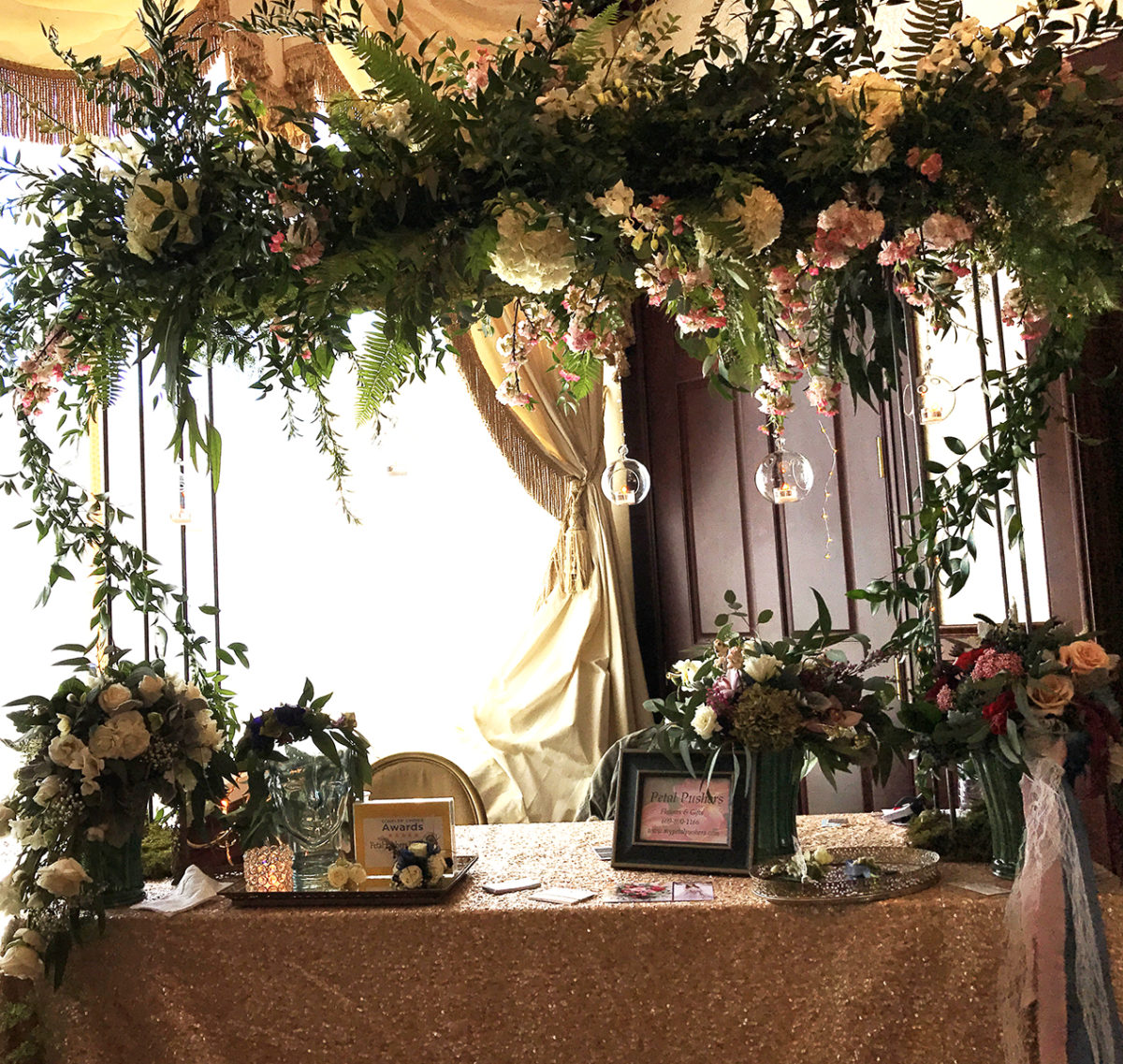 NEW Nassau Inn wedding linen & china on display with gorgeous Floral & Designs by Petal Pushers.A taste of  Chez Alice, our local Palmer Square partner!