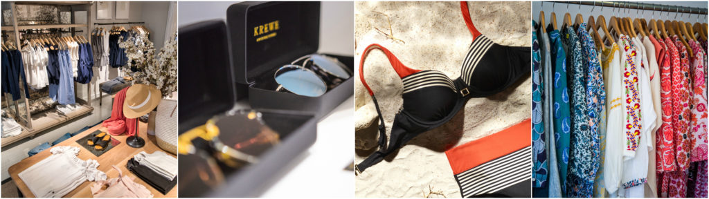 You’ll find the perfect variety of chic vaycay outfits at Club Monaco, Lace Silhouettes Lingerie, Rouge, Roller Rabbit, Botari, NIC+ZOE , Talbots , Ann Taylor and more !