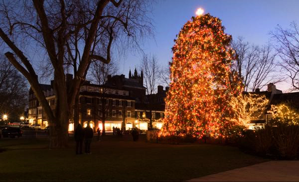 Take a short walk from the Nassau Inn and you will find yourself in front of this imposing stone building in the heart of Princeton University’s old campus. This is where it all began when The College of New Jersey (the University’s original name) was moved to Princeton from Newark, New Jersey in 1756. For several decades students spent nearly every waking hour here: studying, sleeping, eating, and praying. Built to a thickness of more than two feet, the walls of this building have withstood the American Revolution, riots and fires. Make sure to take a picture with the tigers and pause to appreciate the carefully-cultivated ivy–a gift from Princeton’s graduating classes! - Palmer Square