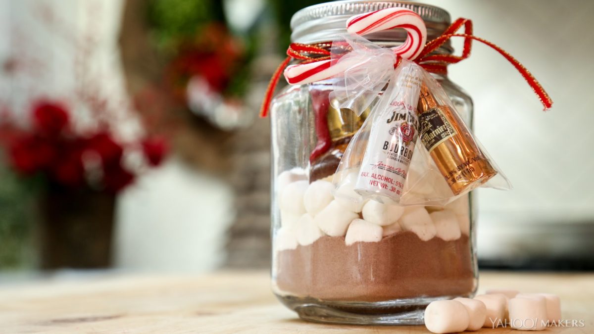 Spiked Hot Chocolate in a Mason JarDIY recipe here